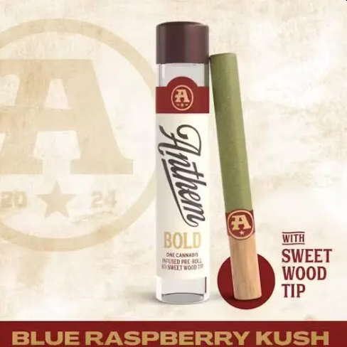 Anthem Bold - Diamond Infused Pre-Roll with Wood Tip Blue Raspberry Kush - 1g