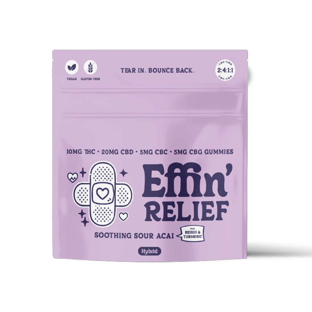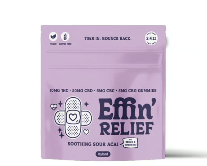 EFFIN' RELIEF SOOTHING SOUR ACAI 4:2:1:1 CBD:THC:CBC:CBG 10PK GUMMIES 100MG