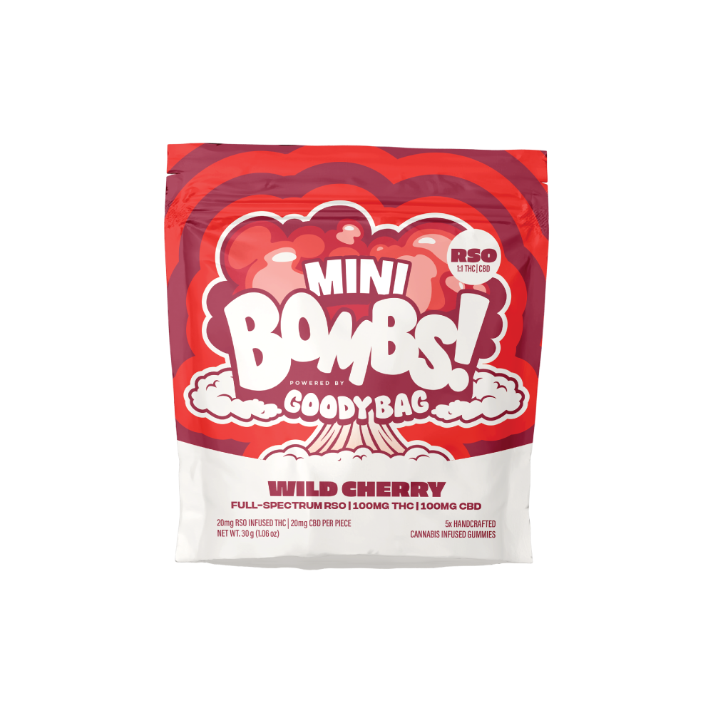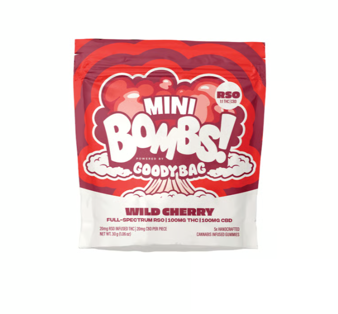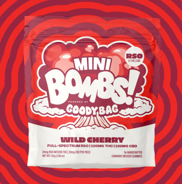 Wild Cherry Mini Bombs | 20mg THC: 20mg CBD | 5pk RSO Gummies | Goody Bag