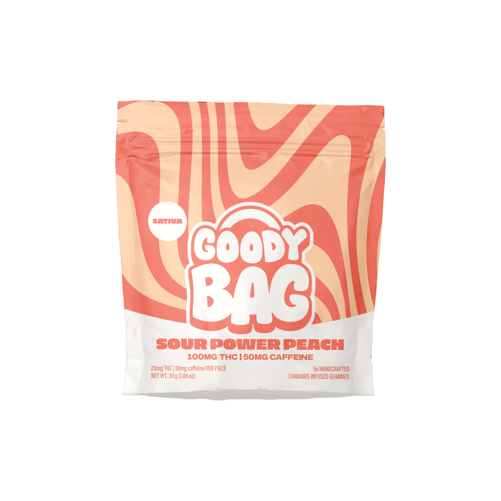 Sour Power Peach | 20mg THC: 10mg Caffeine | 5pk Gummies | Goody Bag