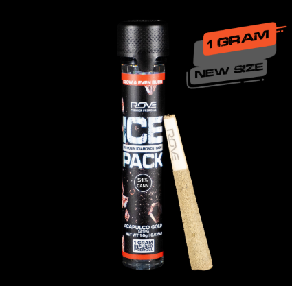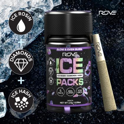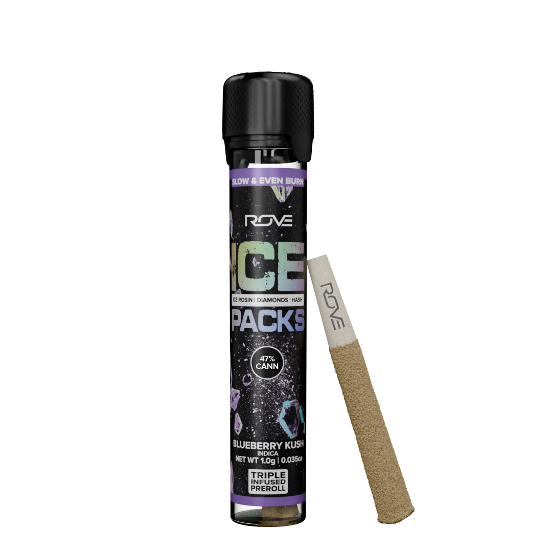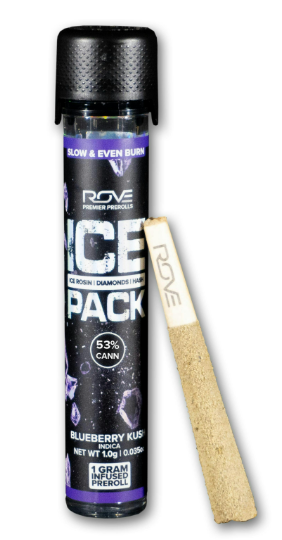 ROVE | Blueberry Kush Ice Packs Triple Infused (Ice Rosin,Diamonds,Hash) PreRoll 1g - Indica